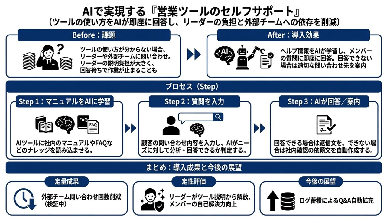 事例⑩ 営業ツールサポート|マニュアルをAIに学習させ、問い合わせを自己解決へ