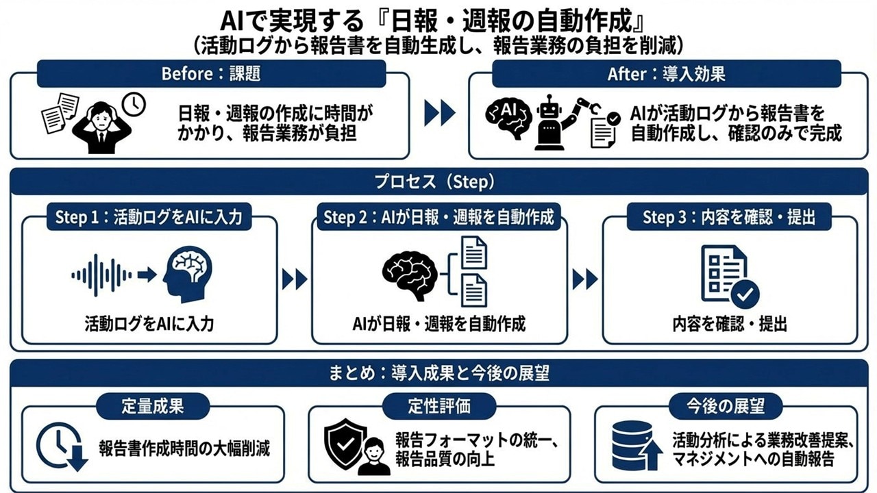 事例⑧ 週次報告書作成|日報を集約し、週次レポートを自動ドラフト化