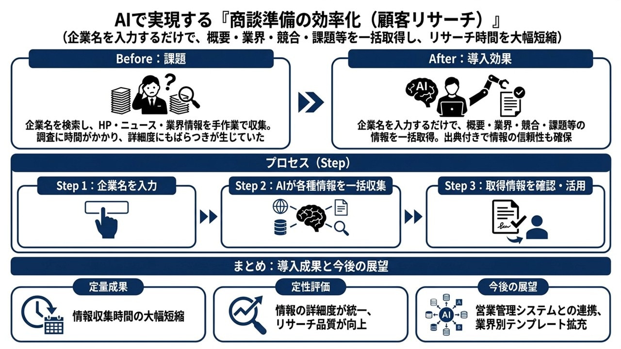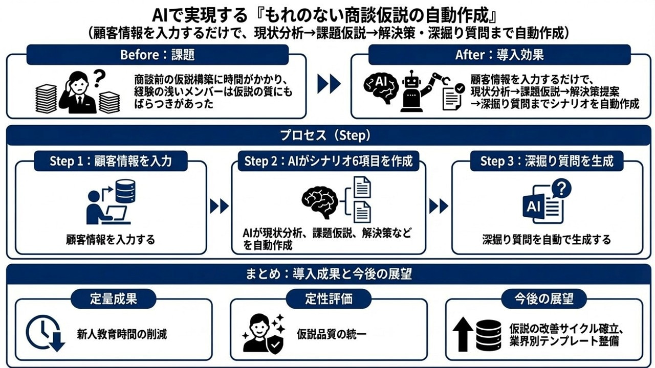 - 2.1.事例④商談仮説の自動作成|たたき台を自動生成し、新人の準備・教育工数を削減