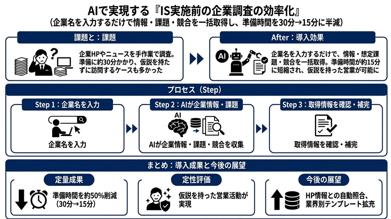 事例⑥企業リサーチ|仮説を自動生成し、準備時間を約50%削減