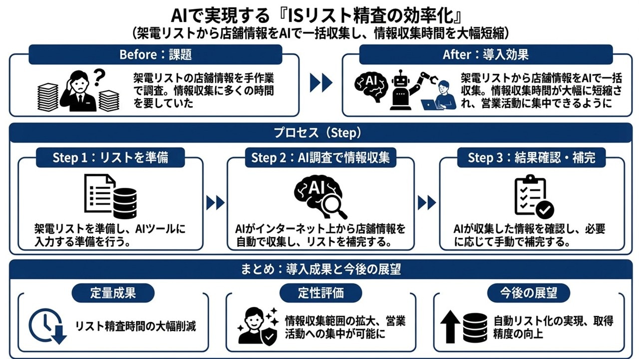 - 2.4.事例⑦架電リスト精査|公開情報をAIで一括収集し、架電前の下準備を効率化