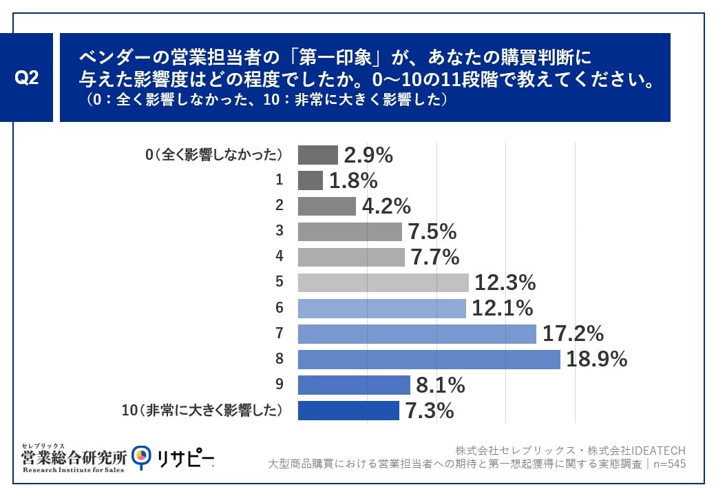続いて、「ベンダーの営業担当者の第一印象がどれぐらい購買に影響を与えたか」という質問です。