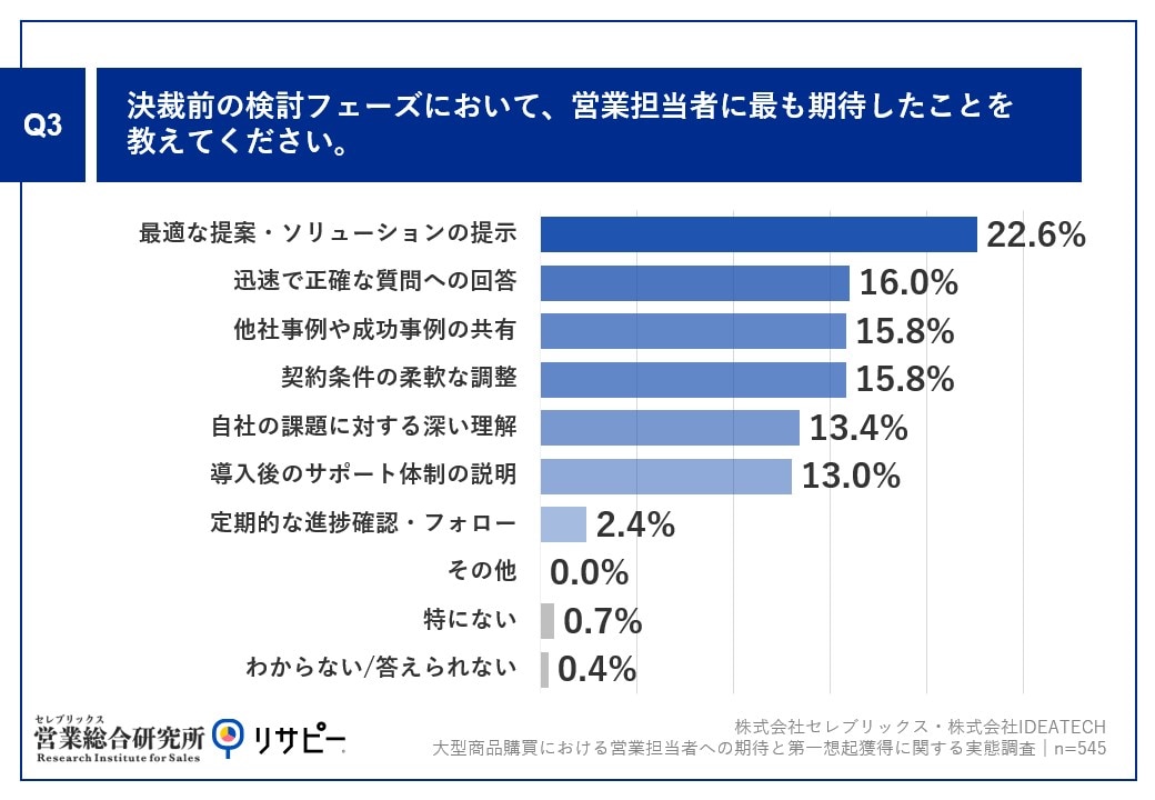 本調査から、大型商談の成否を分ける要素が、単に商材の優位性をアピールするだけではないことが明らかになりました。