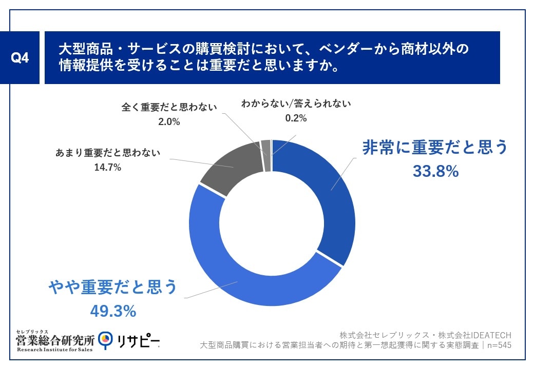 今回の調査で最も注目すべきポイントは、83%もの回答者が「商材以外の情報提供が重要」だと回答したことです。
