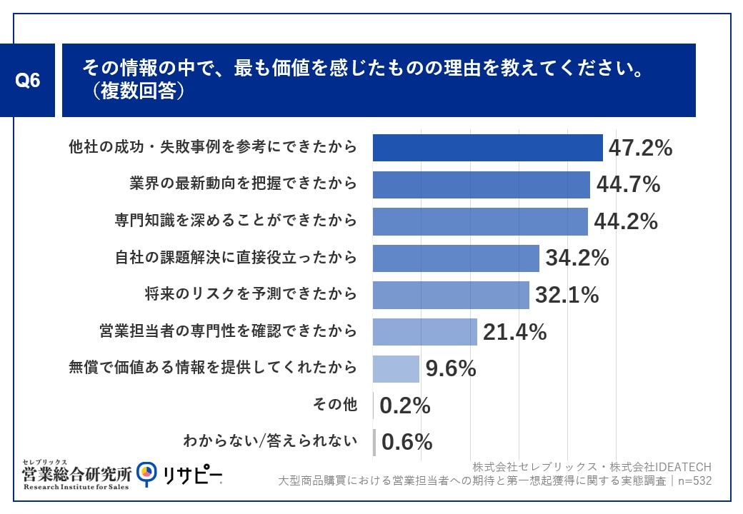 この調査から、大型商談の意思決定者が、営業担当者が提供する商材以外の情報を非常に重視していることが明らかになりました。