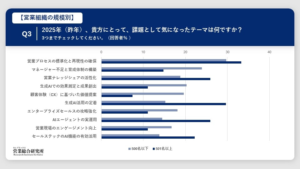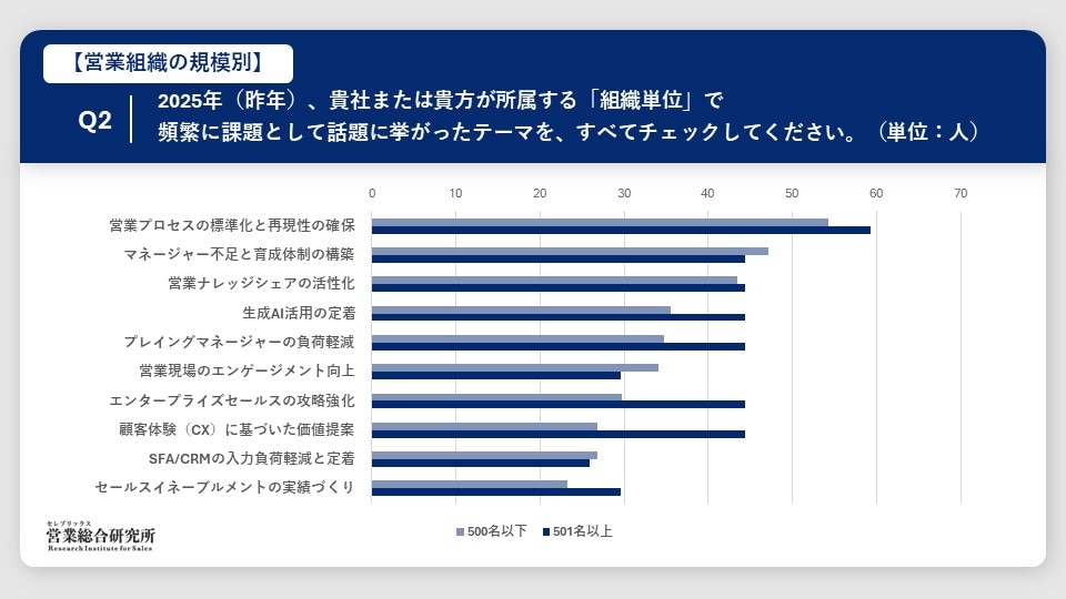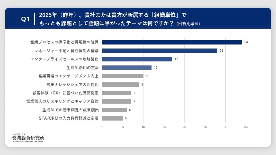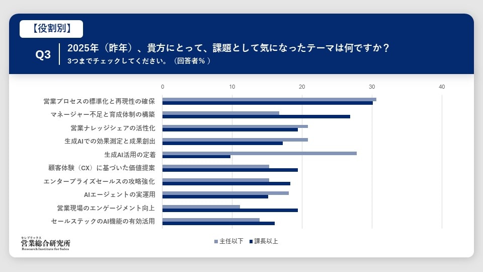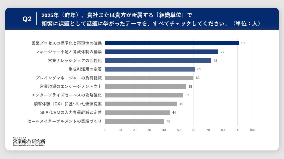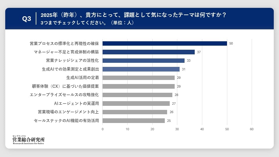 2025年(昨年)話題となったテーマについて、営業組織の状況をリサーチしました。