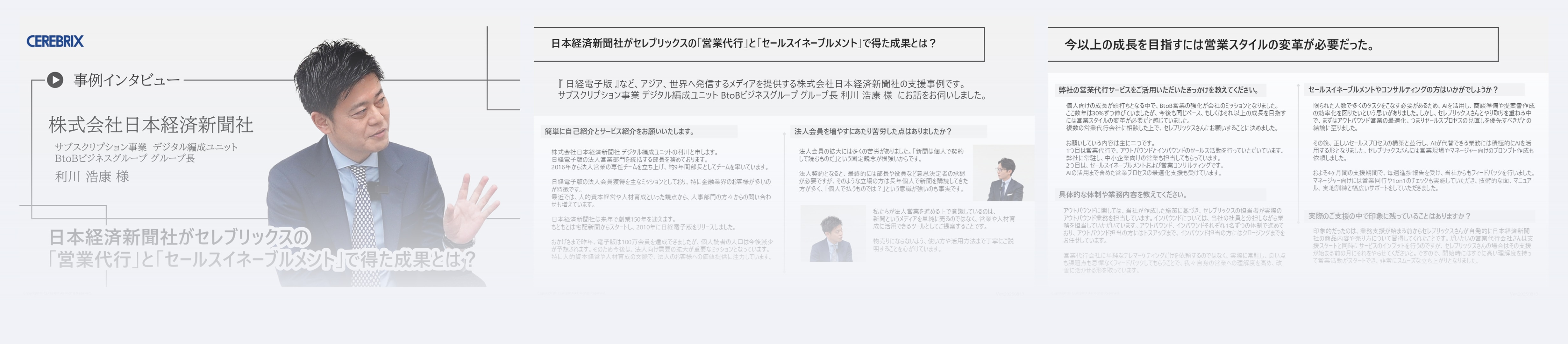 BtoCからBtoBへ。日本経済新聞社が、法人向け営業で直面した課題と、それを乗り越えるために実行した変革のすべて。営業代行・コンサルティングを成功に導いた秘訣を公開します。