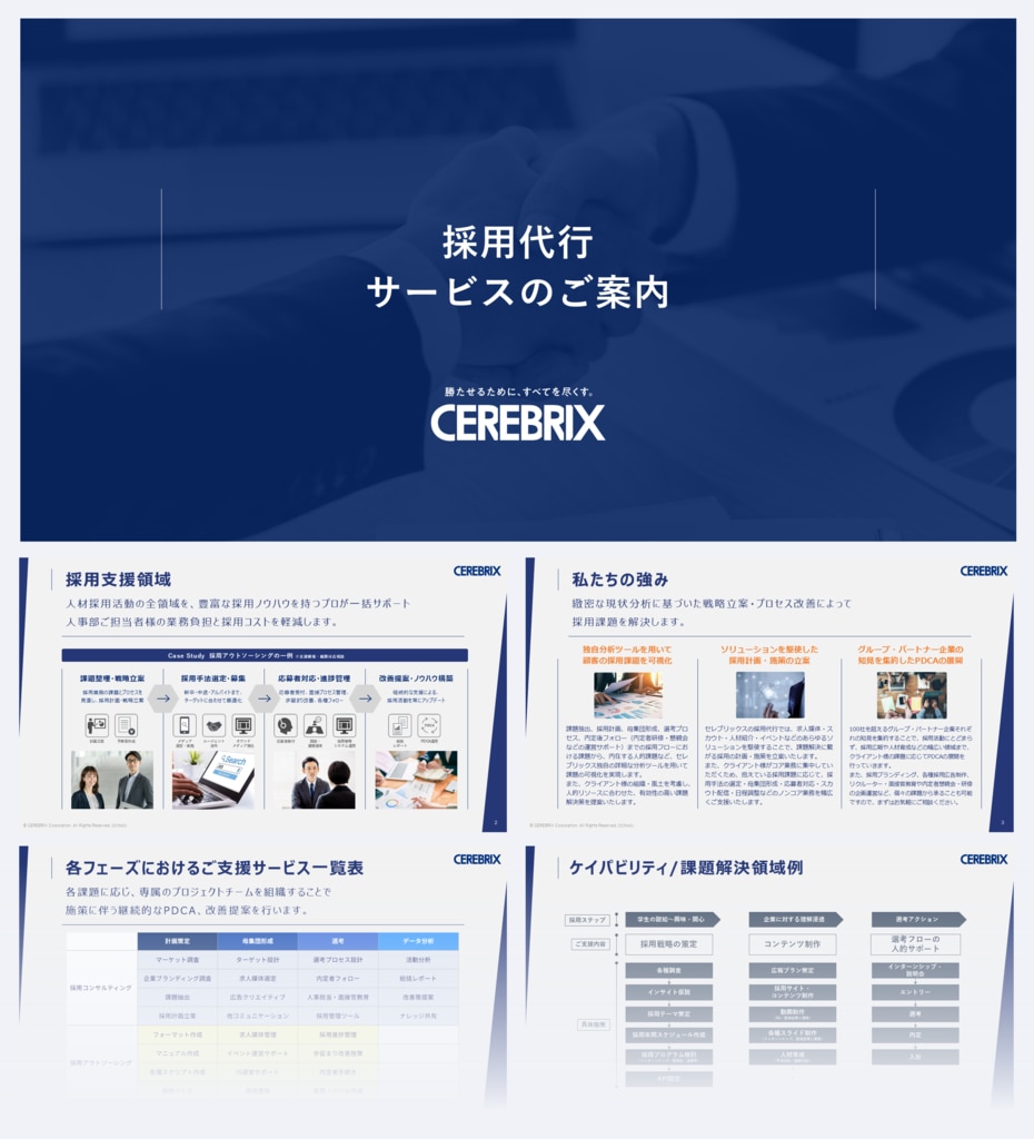 採用代行サービスでは、人材採用活動の全領域を、豊富な採用ノウハウを持つプロが一括サポートいたします。人事部のご担当者様の業務負担と採用コスト軽減に寄与します。本資料では、具体的な支援内容やプラン、ご支援事例を紹介しています。