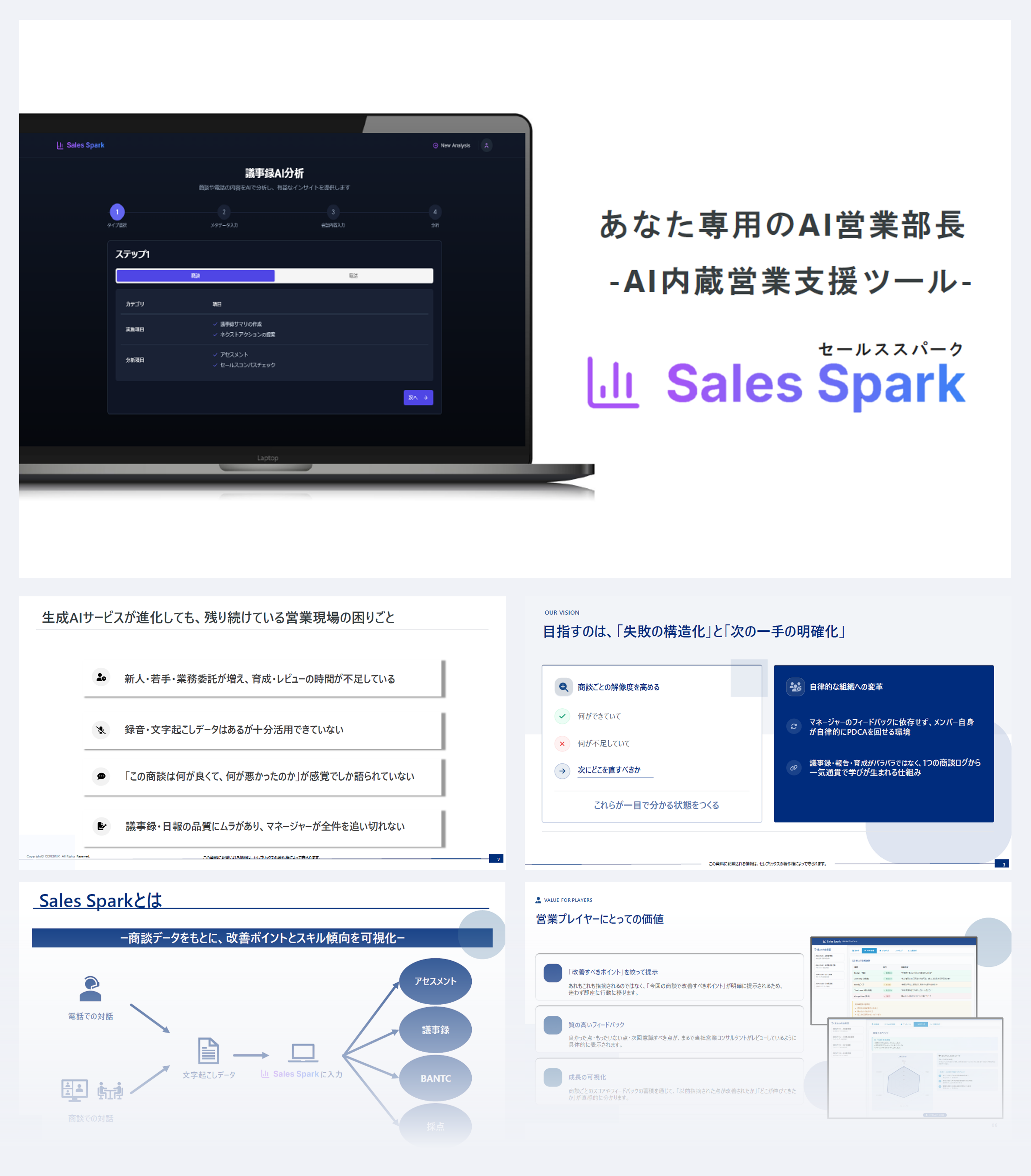 AIを搭載したセレブリックスの新ツール「Sales Spark(セールススパーク)β版」のサービス資料です。「このツールでできること」「デモ動画」「料金プラン」など、概要情報を掲載しています。