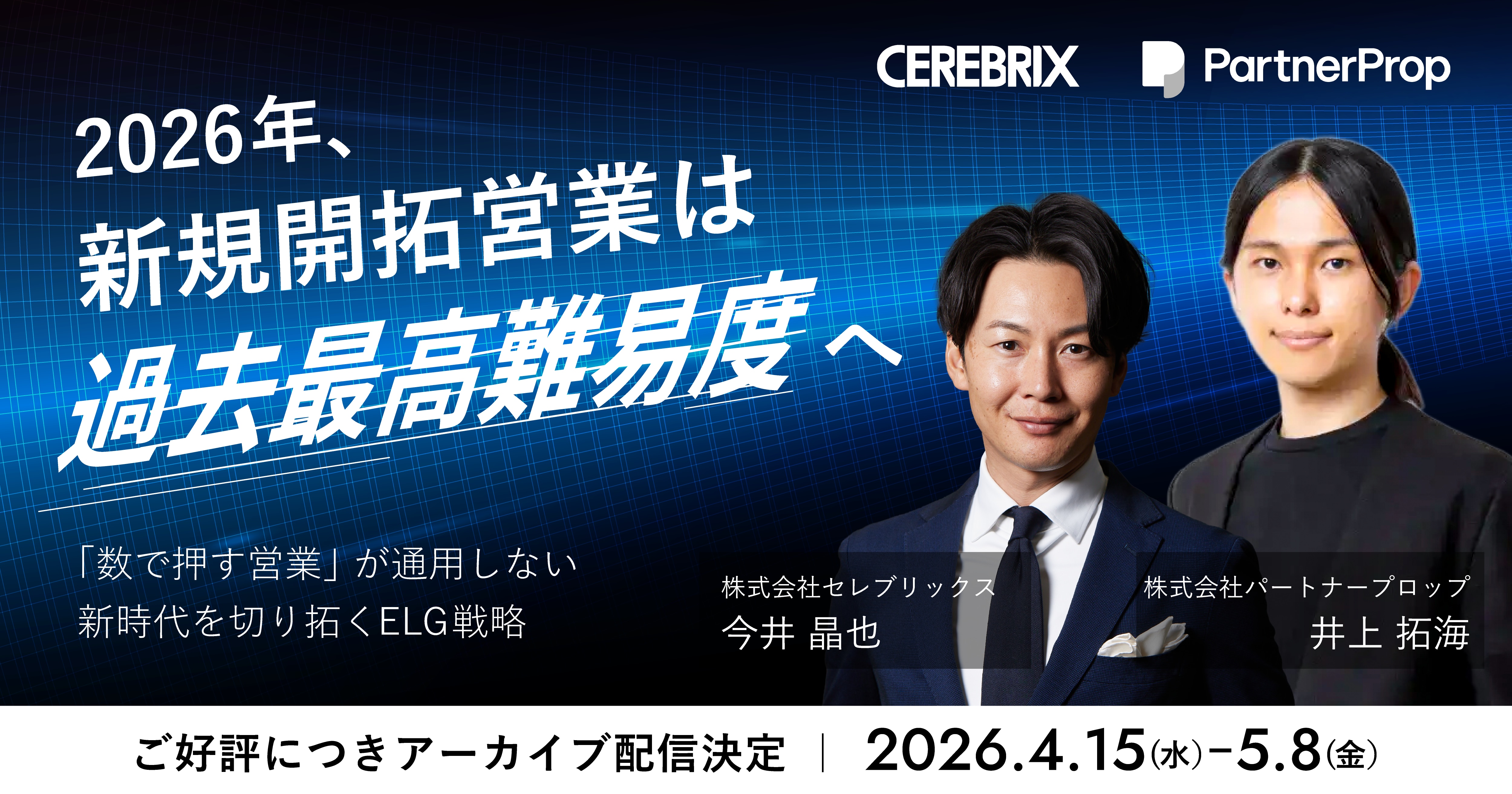本対談では、パートナービジネスの市場を切り拓くパートナープロップ 代表の井上氏と営業の未来を問い続けるセレブリックス 営業総合研究所所長の今井が登壇。2026年の営業環境の変化と、パートナーセールスが切り拓く新たな可能性を縦横無尽に語り合います。